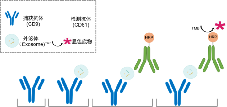 本產(chǎn)品是基于ELISA夾心法用于外泌體定性定量的檢測試劑盒,利用高性能CD9捕獲抗體和CD81檢測抗體可以靈敏地檢測共表達外泌體表面標記的CD9和CD81靶標。本產(chǎn)品可適用于人體體液、細胞培養(yǎng)液等多種樣本,能夠?qū)崿F(xiàn)對原始樣本中的外泌體進行快速精準定量。