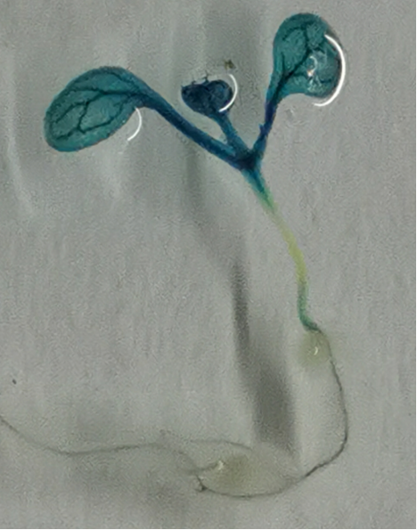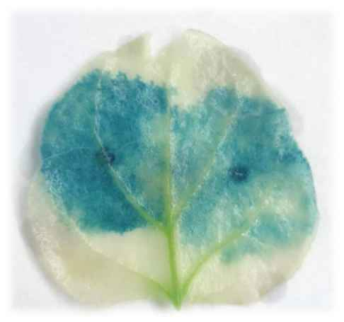 3.洗脫:將材料轉(zhuǎn)入無水乙醇或80%丙酮中脫色2-3次,至陰性對照材料為白色。GUS染色陽性的藍(lán)色斑點很穩(wěn)定,在酒精中不褪色。