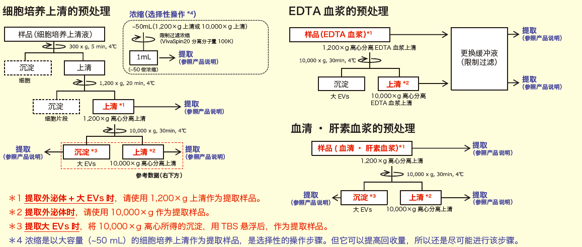 樣品預(yù)處理:對(duì)樣品進(jìn)行 1,200×g 離心操作※1。如果要得到更高純度的外泌體,則按照下述步驟對(duì)樣品進(jìn)行 10,000×g 離心操作※2。