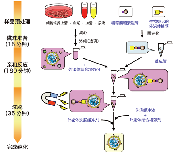 試劑盒成分 (1) 鏈霉親和素磁珠 (2)生物素標(biāo)記的外泌體捕獲 (3)外泌體捕獲免疫固定緩沖液 (4)外泌體結(jié)合增強(qiáng)劑(×500) (5)洗滌緩沖液 (6)外泌體洗脫緩沖液 (7)反應(yīng)管 |