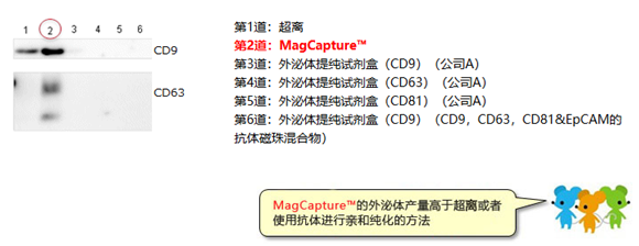使用該試劑盒,超離法和抗體親和法提取人血清的外泌體,接著用 CD9 和 CD63 抗體進(jìn)行免疫印跡實(shí)驗(yàn)。