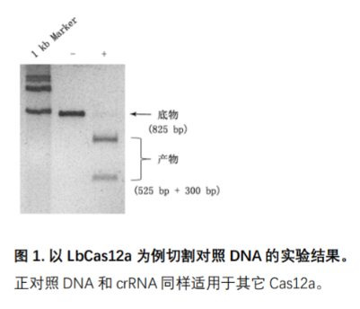 Cas12a 核酸酶(舊稱 Cpf1)是依賴于 RNA 介導(dǎo)的內(nèi)切核酸酶,在靶標(biāo) DNA 存在 PAM 的情況下,可特異地切割靶標(biāo)雙鏈 DNA。與 Cas9 不同:(1Cas12a 只需要單個(gè) crRNA,且體積更小、更易被遞送至細(xì)胞中;(2Cas12a 切割后產(chǎn)生粘性末端,更利于基因組精確編輯;(3Cas12a 的切割位點(diǎn)遠(yuǎn)離其識(shí)別位點(diǎn),為連續(xù)多次編輯提供了可能性;(4Cas12a 識(shí)別的 PAM 序列與 Cas9 不同,因此提供了不同編輯位點(diǎn)的選擇;針對(duì)不同的 Cas12a 蛋白,其識(shí)別靶標(biāo)所需的 PAM 位點(diǎn)不同,其中部分 Cas12a 蛋白識(shí)別 TTN 位點(diǎn),部分 Cas12a 蛋白識(shí)別 TTTN 位點(diǎn)。本產(chǎn)品中(包括Cas12a 酶)都不含任何除 Cas12a 外的任何其它核酸酶活性。