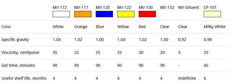 MV-Series Mixing Procedure:To achieve a viscosity level suitable for injection of the microcirculation, it is necessary to blend the MV compound with an equal quantity (by weight) of MV-Diluent. Volume mixing requires 5ml of diluent for every 4ml of compound. The mixture of compound and diluent is catalyzed with 5% (by weight or volume) of MV Curing Agent. Viscosity ranges from 20 to 30 centipoise. Working time is 20 minutes and begins with the addition of curing agent.