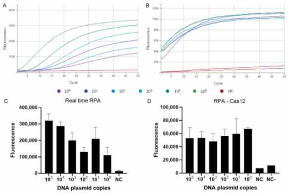 圖1. 實時 RPA 和 RPA-Cas12a 檢測系統(tǒng)的靈敏度