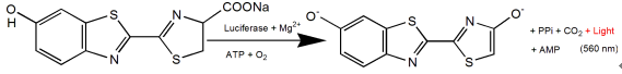 將攜帶熒光素酶編碼基因(Luc)的質(zhì)粒轉(zhuǎn)染入細(xì)胞后,導(dǎo)入研究動物如大、小鼠體內(nèi),之后注入熒光素,通過生物發(fā)光成像技術(shù)(BLI)來檢測光強(qiáng)度變化,從而實時監(jiān)測疾病發(fā)展?fàn)顟B(tài)或藥物的治療功效等。也可以利用ATP對此反應(yīng)體系的影響,根據(jù)生物發(fā)光強(qiáng)度的變化來指示能量或生命體征。