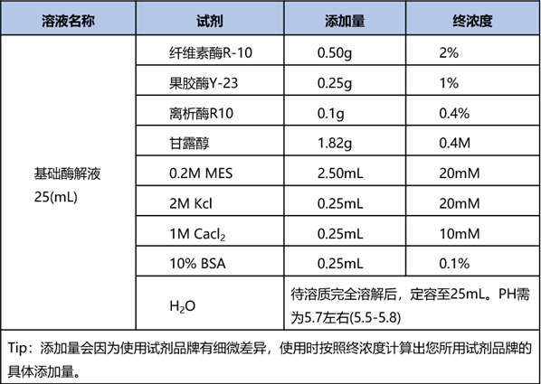 在前期條件摸索時(shí),可以先確立以纖維素酶 R-10、果膠酶 Y-23 為基礎(chǔ)酶解液配方,根據(jù)出現(xiàn)的實(shí)驗(yàn)情況來對(duì)酶解液進(jìn)行優(yōu)化,以下是詳細(xì)說明: