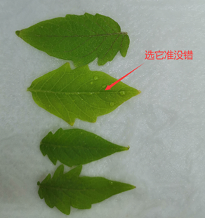 2、取材篩選:葉片組織取材時(shí)優(yōu)先選取顏色為鮮綠色且葉片較為柔軟的部分進(jìn)行實(shí)驗(yàn)(如下圖所示);