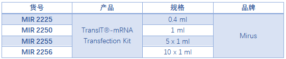 方便:每個試劑盒都包含TansIT-mRNA轉(zhuǎn)染試劑和mRNA Boost增強劑;