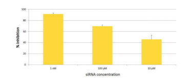 更加令人驚嘆的是, 使用10 pM siRNA 依然能達到50%的沉默效率 (Fig. 2).