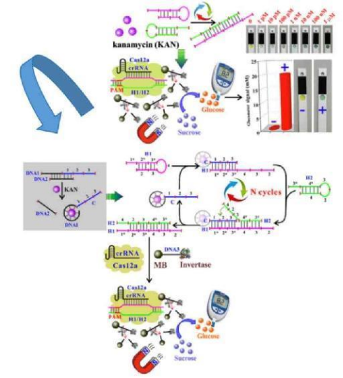 圖1.基于CRISPR/Cas12a和血糖儀檢測Kan的原理