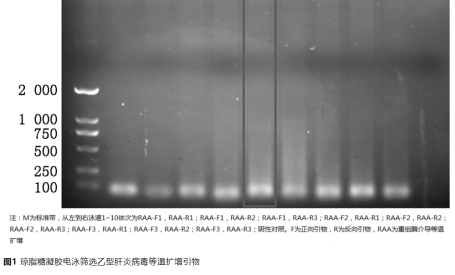 1.試劑與儀器:HBV DNA陽(yáng)性質(zhì)粒(博邁德生物科技有限公司);HBV國(guó)際標(biāo)準(zhǔn)品(英國(guó)國(guó)家生物標(biāo)準(zhǔn)與控制研究所);瓊脂糖(索萊寶科技有限公司);Tris-乙酸-乙二胺四乙酸溶液和GoldenViewTM(博邁德生物科技有限公司);TIANamp病毒DNA/RNA提取試劑盒(天根生物技術(shù)有限公司);RAA核酸擴(kuò)增試劑盒和逆轉(zhuǎn)錄-重組酶介導(dǎo)的等溫?cái)U(kuò)增試劑盒(眾測(cè)生物科技有限公司);乙型肝炎病毒核酸定量檢測(cè)試劑盒(圣湘生物);凝膠成像儀和 PCR擴(kuò)增儀(美國(guó)Bio-Rad公司);Roche Light Cycler 480 Ⅱ?qū)崟r(shí)熒光定量PCR儀器(瑞士羅氏公司)。