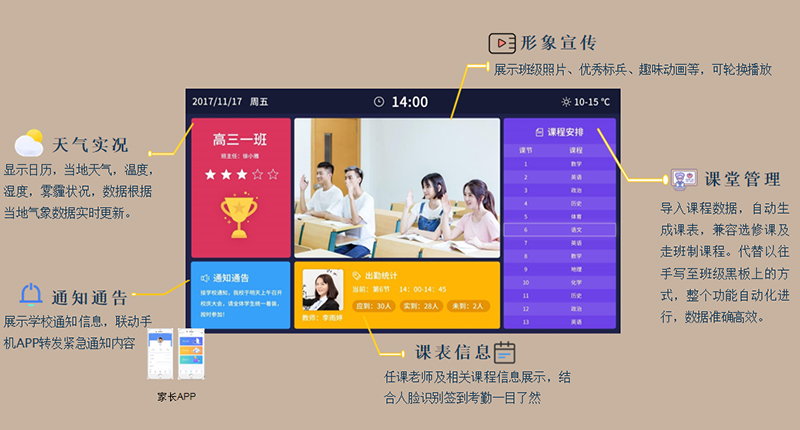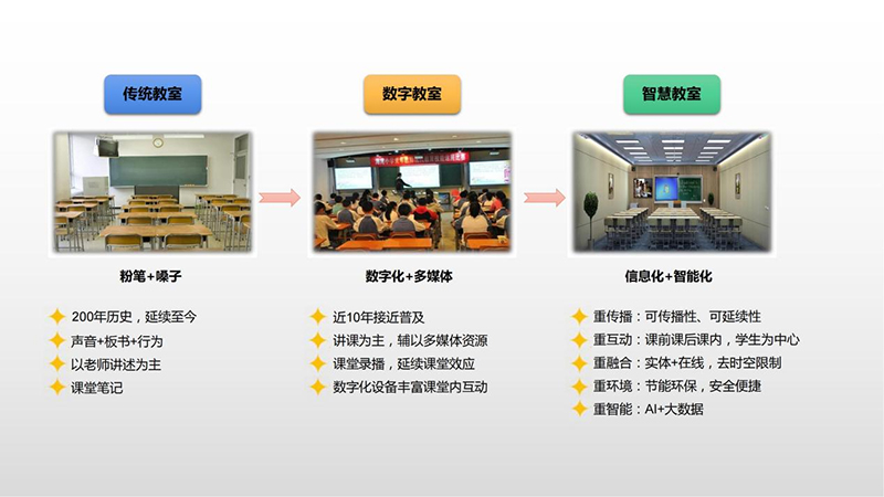 以云計(jì)算、大數(shù)據(jù)挖掘、物聯(lián)網(wǎng)、移動(dòng)互聯(lián)等為標(biāo)志的信息技術(shù)快速發(fā)展及在教育教學(xué)領(lǐng)域的應(yīng)用,使得我們傳統(tǒng)教室也漸漸從普通教室轉(zhuǎn)變?yōu)橹腔坌徒淌,從單一技術(shù)的教室應(yīng)用轉(zhuǎn)變?yōu)榉杭夹g(shù)的教學(xué)環(huán)境。