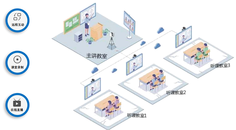 各課室建設(shè)錄播主機(jī),實(shí)現(xiàn)課堂師生畫(huà)面跟蹤,音視頻錄制、在線直播、點(diǎn)播。系統(tǒng)實(shí)現(xiàn)在授課過(guò)程中,本地教室與遠(yuǎn)程聽(tīng)課教室之間的同步授課,以及實(shí)時(shí)音視頻互動(dòng)交流。互動(dòng)課程能夠同步錄制,真實(shí)展現(xiàn)互動(dòng)教學(xué)場(chǎng)景。積極推動(dòng)“一校帶多點(diǎn)”、“一校帶多校”的教學(xué)和教研組織模式,逐步使依托信息技術(shù)的“優(yōu)質(zhì)學(xué)校帶薄弱學(xué)校、優(yōu)秀教師帶普通教室”模式制度化。